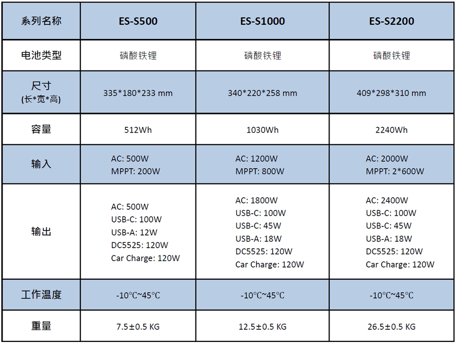 ES-S 系列:500W~2400W 便携式储能电源